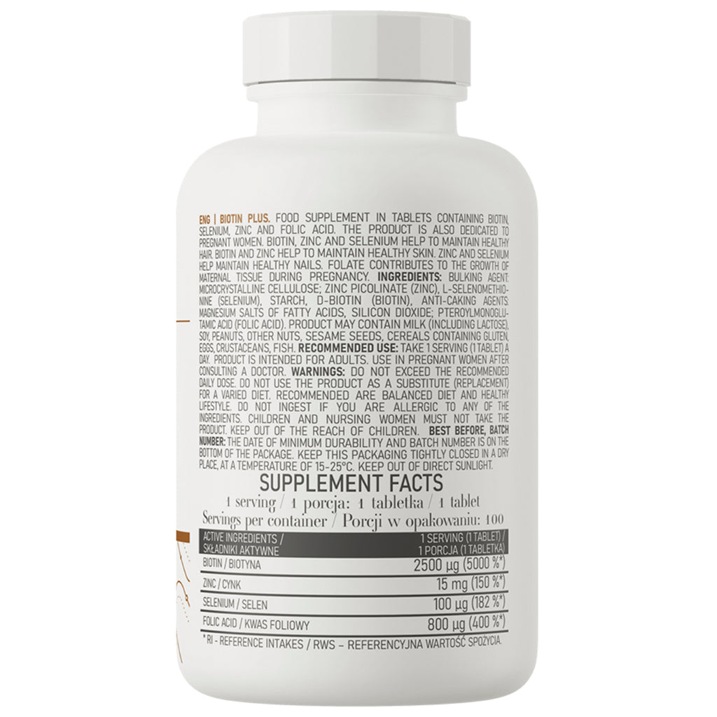 Ostrovit Biotina PLUSes un moderno suplemento dietético en comprimidos que contiene biotina, selenio, zinc y ácido fólico. La biotina, el zinc y el selenio ayudan a mantener el cabello sano, la piel sana y las uñas sanas.