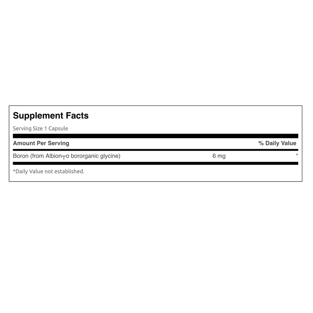 El boro es un mineral traza esencial, lo que significa que el cuerpo lo necesita en pequeñas cantidades para funcionar correctamente. Si bien no se conoce completamente su función en el cuerpo, la investigación sugiere varios beneficios potenciales de la suplementación con boro, aunque se necesita más investigación para confirmar plenamente estos efectos.Swanson Boron de Albion’s® Bororganic Glycine optimiza la absorción y la biodisponibilidad para garantizar una suplementación efectiva
