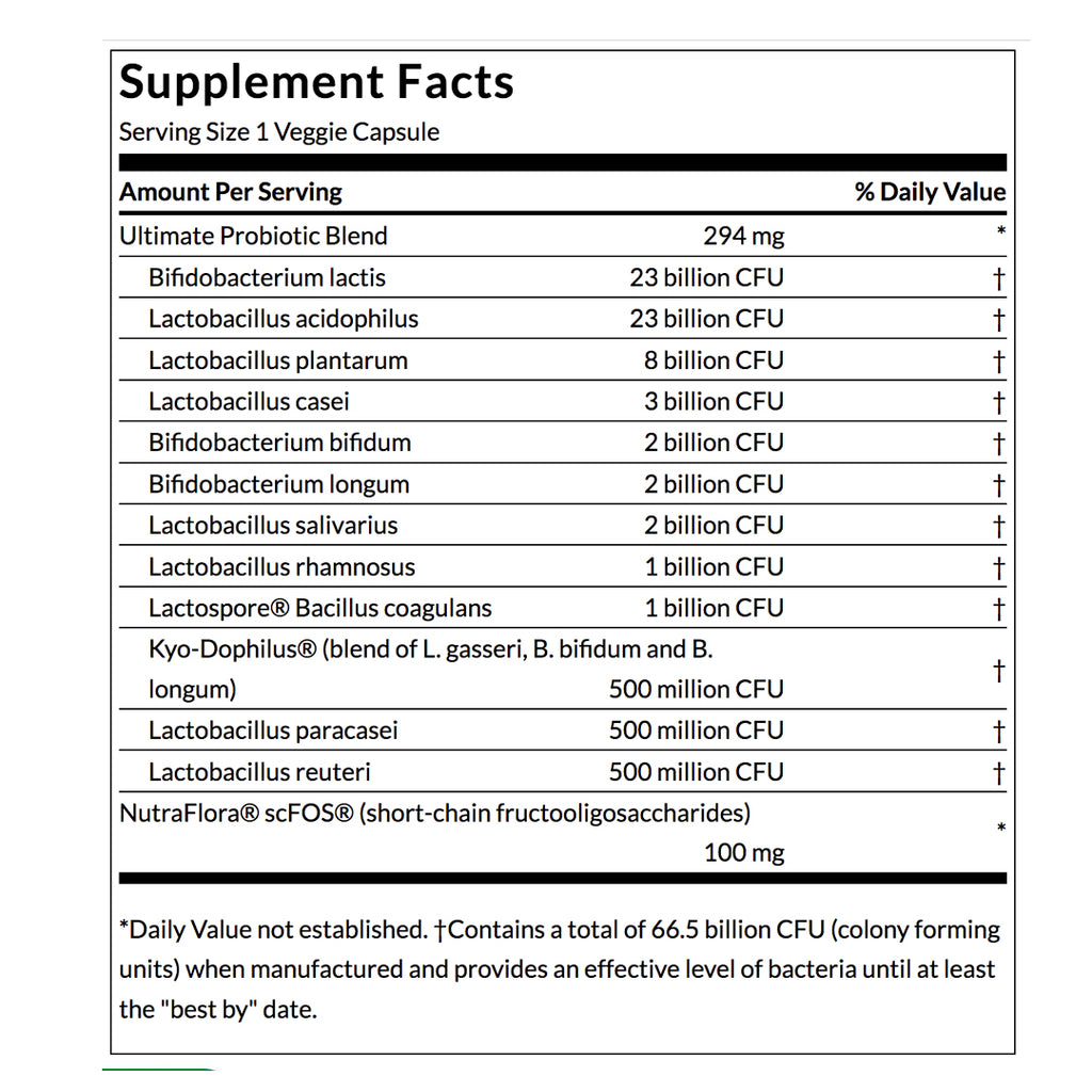 Pero eso no es todo. La fórmula probiótica también incluye 100 mg de FOS prebiótico de cadena corta NutraFlora para nutrir los organismos probióticos y ayudarlos a prosperar.