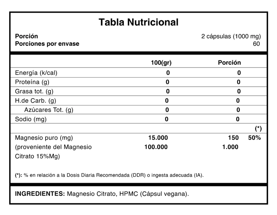 120 Cápsulas Magnesio citrato 150 mg por porción Apto para veganos Libre de gluten