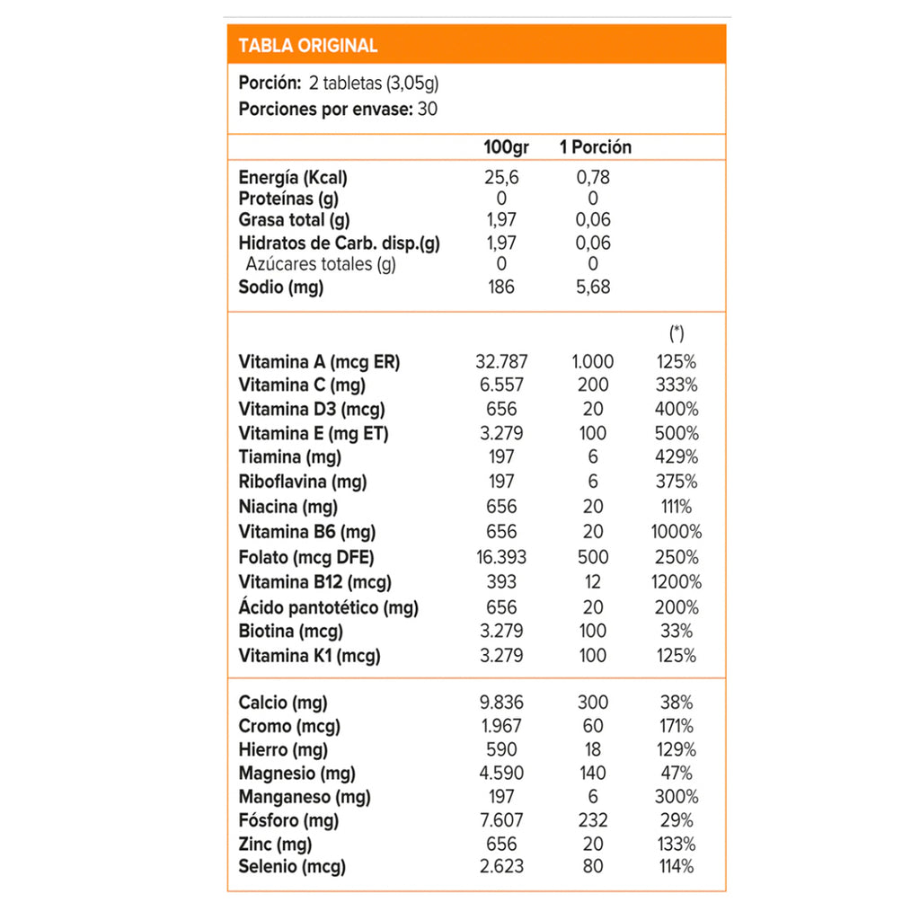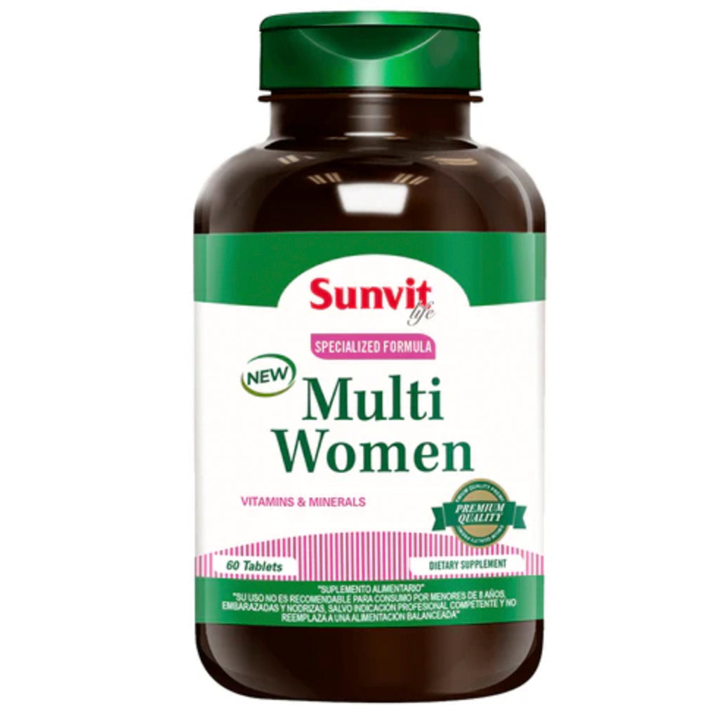 MULTI WOMAN es una formulación diseñada para la mujer actual que contiene vitaminas y minerales con el objeto de aportar los principales micronutrientes. Contiene Vitamina del complejo B que incrementa la energía y rendimiento para mejorar la memoria. Su mezcla de Biotina, Vitamina E, C, Betacaroteno, Hierro y Zinc nutren la piel y pelo para lucir más bella y saludable. Sus antioxidantes como Betacaroteno, Vitamina E, C y Zinc que frenan la acción de los radicales libres causantes del envejecimiento prematuro. Y como si fuera poco, protege la salud de tus huesos ya que cada tableta aporta 250 mg de Calcio. MULTI WOMAN viene en un envase de 60 tabletas sin sabor. Consumir 2 al día de preferencia con comidas.