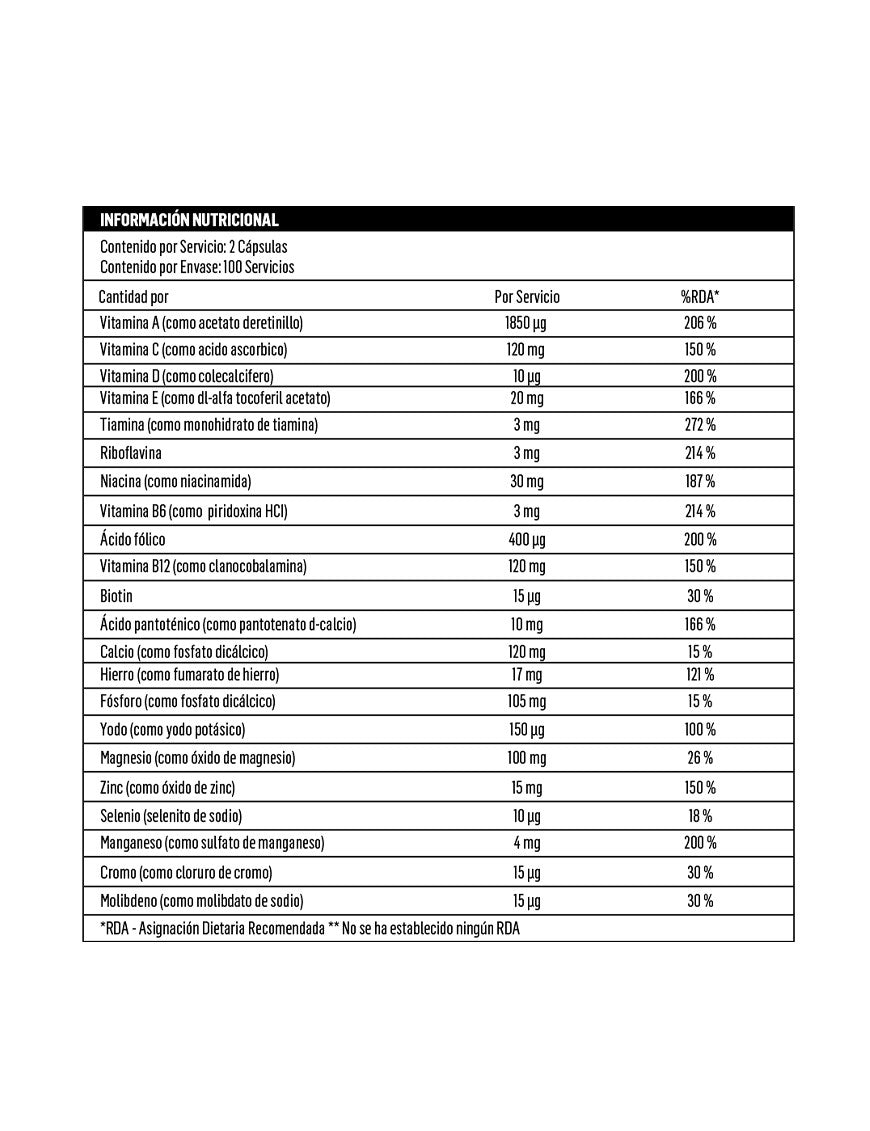 - 12 Vitaminas y 11 Minerales.