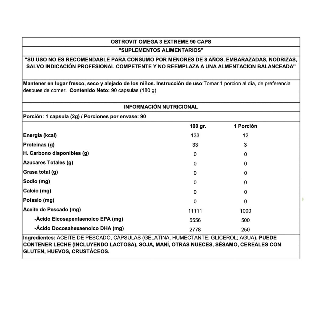 OstroVit Omega 3 Extreme 90 caps es un complemento alimenticio saludable a base de aceite de pescado. Contiene ácidos grasos omega-3 que apoyan el trabajo del corazón y el cerebro y fortalecen los vasos sanguíneos.