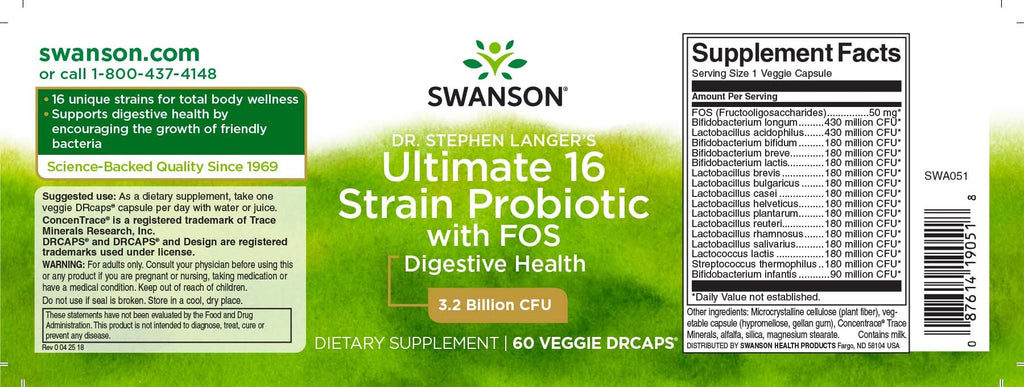 El último probiótico de 16 cepas del Dr. Stephen Langer de Swanson Probiotics incluye más de cuatro veces la cantidad de cepas y más del doble de UFC en comparación con muchas formulaciones probióticas populares comercializadas en clínicas y farmacias en la actualidad. Si bien muchos suplementos populares proporcionan solo dos cepas de bifidobacterias, la fórmula del Dr. Langer ofrece cinco. Y mientras que otros tienen solo una cepa de lactobacillus, Ultimate 16 Strain Probiotic presenta diez, incluido Lactobacillus reuteri , que se agregó recientemente para mejorar la fórmula debido a las capacidades protectoras únicas que ofrece para la salud del colon y la función del sistema inmunológico.