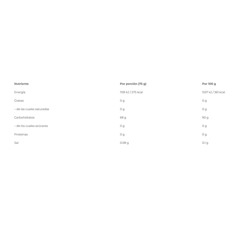 - Este suplemento es una fuente pura de carbohidratos complejos con 0 grasas, 0 azúcares y 0 proteínas.